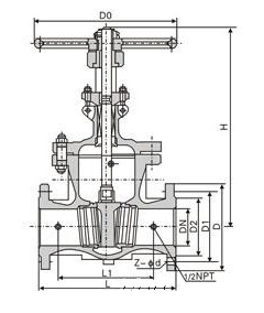 BZ41H夾套保溫閘閥外形尺寸圖