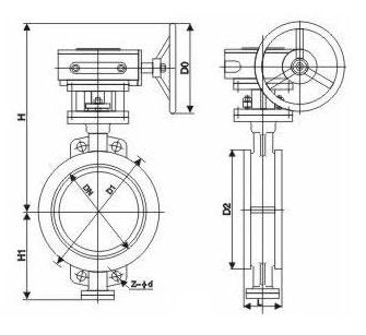 雙向金屬硬密封蝶閥 外形尺寸圖