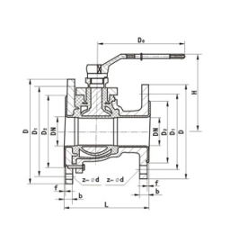 | DN | L | D | D1 | D2 | f | b | z-φd | D0 | H |